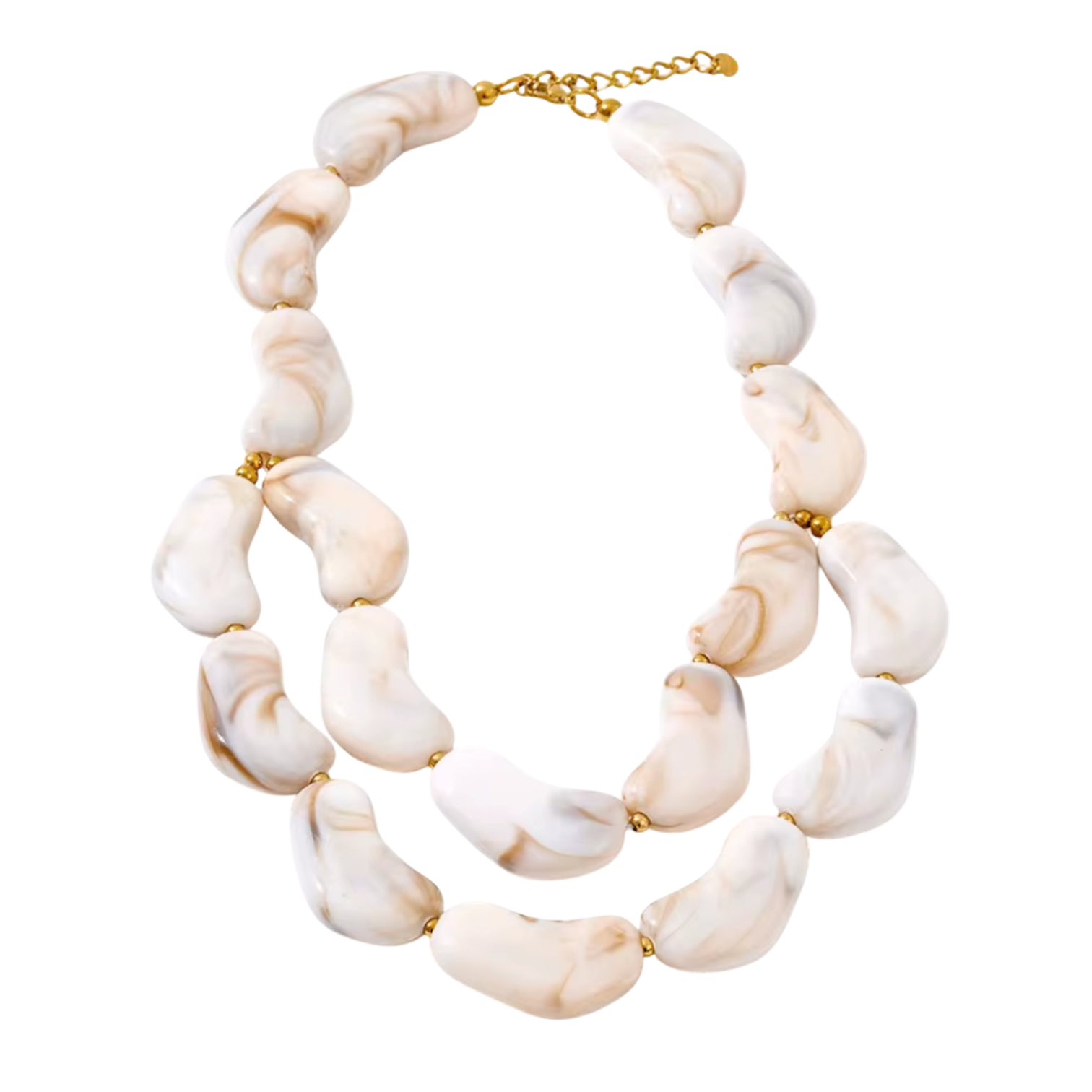 Elevate your look with this bold statement necklace featuring chunky resin beads and delicate gold accents. Perfect for layering or wearing solo, it adds a touch of elegance and modern edge to any outfit.