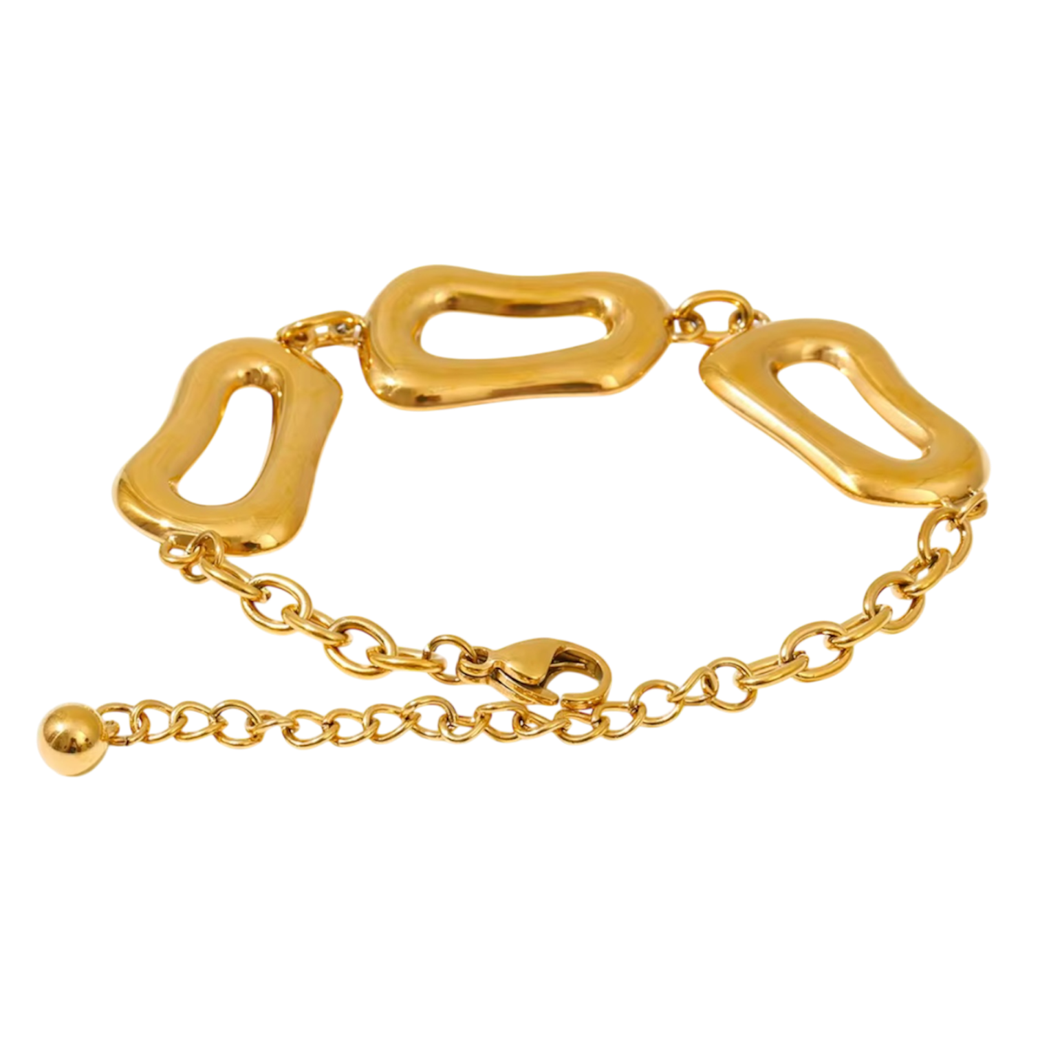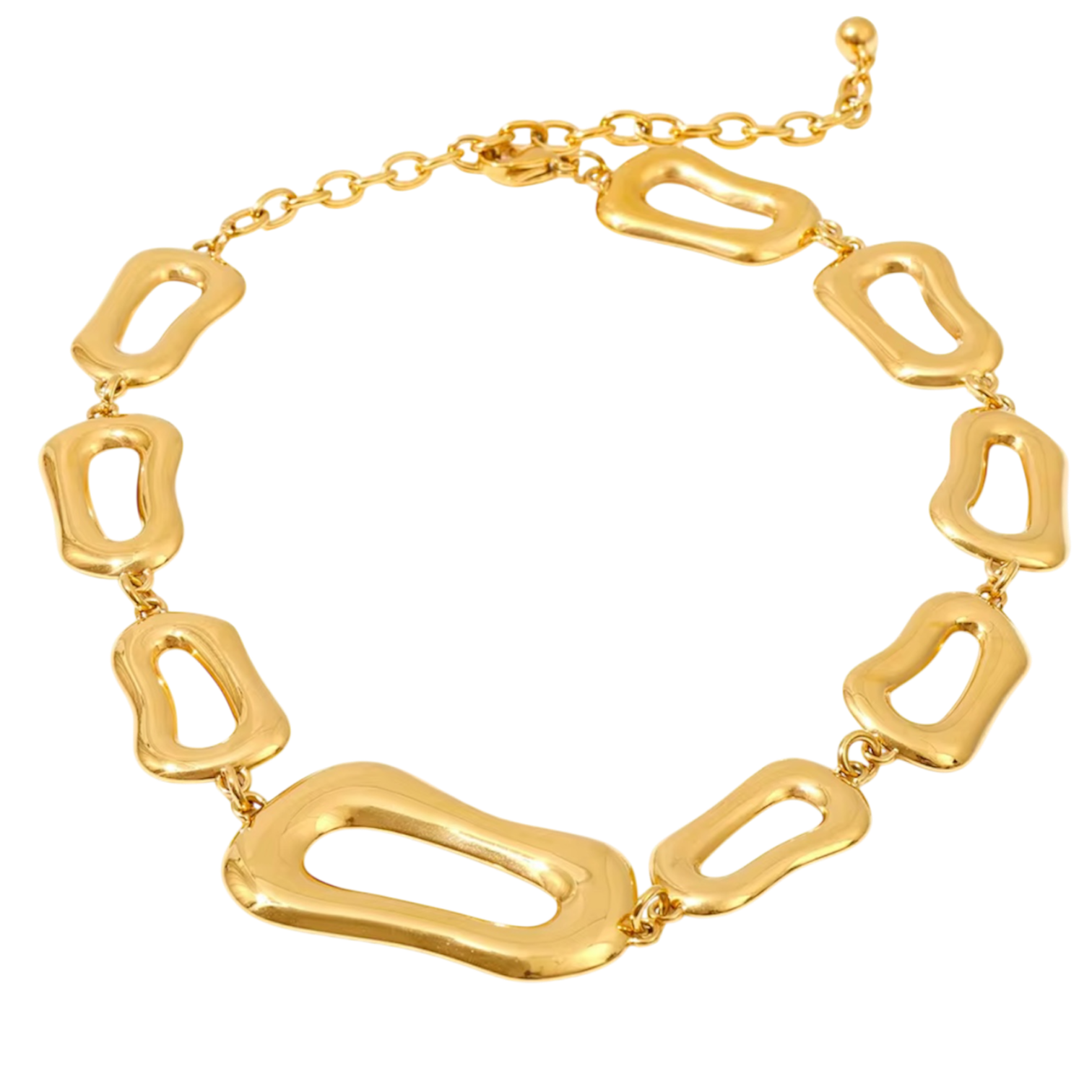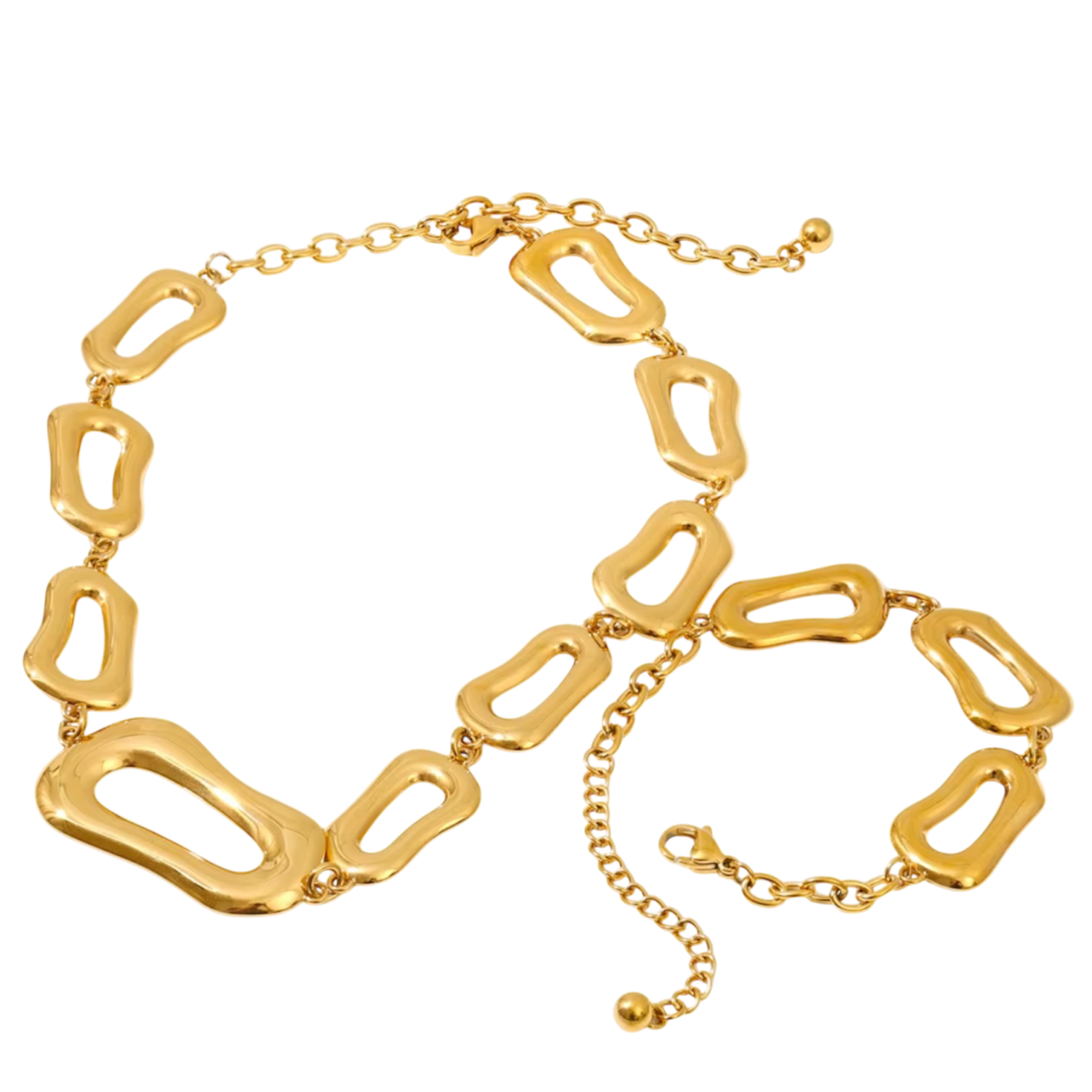 Elevate your everyday with this modern matching set, featuring fluid, open oval links in a polished gold tone. The adjustable necklace and bracelet offer effortless elegance with a sculptural twist—perfect for layering or making a minimalist statement.