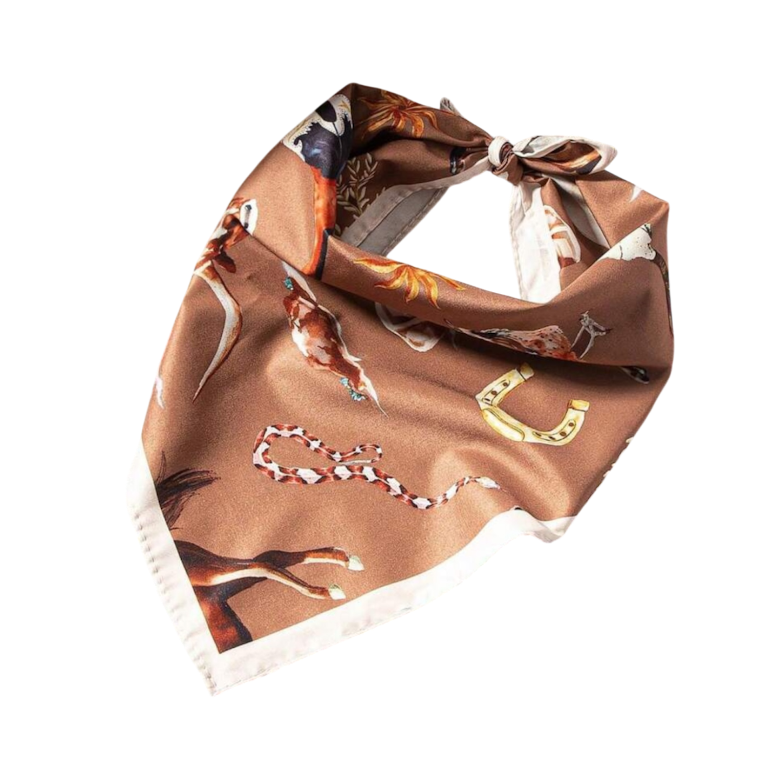 Add a touch of western charm to your style with our Cowboy Spirit Bandana. Featuring playful prints of cowboy hats, boots, horses, and desert details, this lightweight 45x45 cm square is perfect for wearing as a neck scarf, headband, or bag accessory. Soft, versatile, and effortlessly stylish—this bandana is a must-have for anyone who loves rustic vibes with a modern twist.